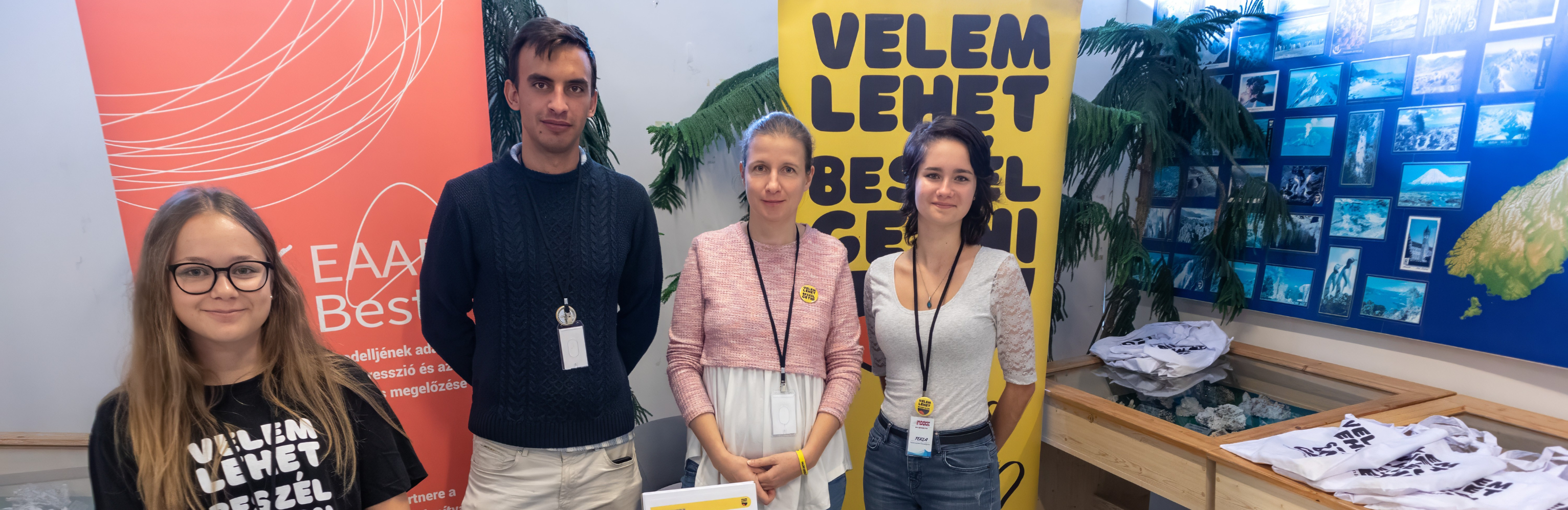 A jól megérdemelt kávészünetet a kiállító szervezetek börzéje követte, ahol nekünk is lehetőségünk nyílt bemutatni, hogyan kapcsolódunk a közösségépítéshez, fiatalok bevonásához két projektünkkel: a Velem Lehet Beszélgetni kezdeményezéssel és az EAAD-val. Büszkén osztottuk meg kooperációs játékainkat, kommunikációs kártyáinkat, információs anyagainkat és eddigi tapasztalatainkat más szervezetek képviselőivel, ahogy mi is rengeteg hasznos ötlettel, tanáccsal gazdagodtunk általuk. Külön öröm volt számunkra, hogy nagyobb közönség előtt itt mutathattuk be először Családi munkafüzetünket, aminek első változata kipróbálásra készen várja azoknak a családoknak a visszajelzéseit, akik szeretnének kicsit többet, kicsit jobban, kicsit máshogy kapcsolódni egymással. Jó volt megélni, hogy egy olyan közösség részesei lehetünk, akiknek hasonló ügyekért dobban a szívük, izgalmas volt keresni a lehetséges kapcsolódási pontokat a további együttműködésre, és örömmel cserélgettük a névjegykártyákat.